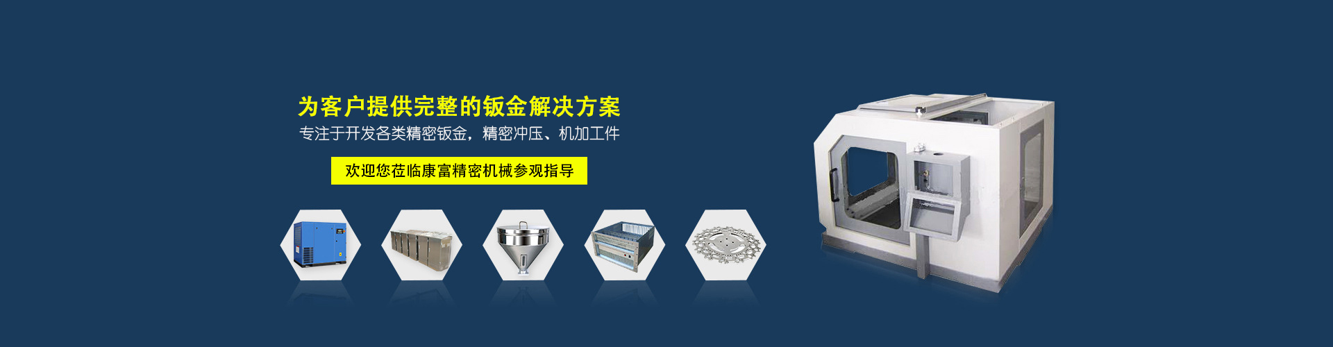 歡迎您蒞臨康富精密機械參觀指導!專注于開發各類精密鈑金,精密沖壓、機加工件